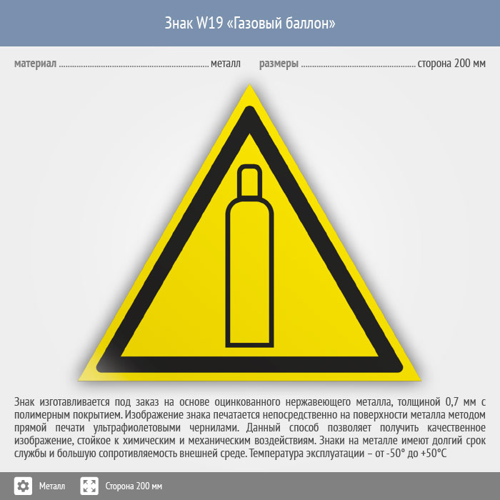 Знак W19 «Газовый баллон» (металл, сторона 200 мм) в Верее купить
