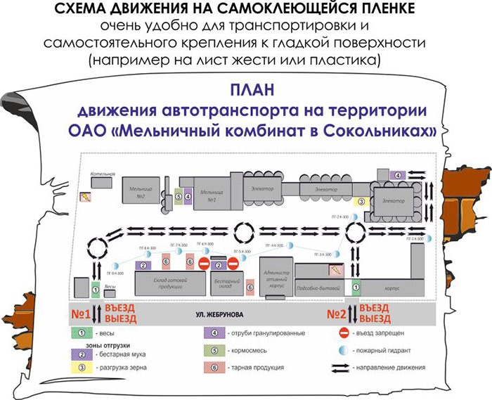 Схема движения автотранспорта (3000х2000 мм, самоклеящаяся плёнка) в Верее купить
