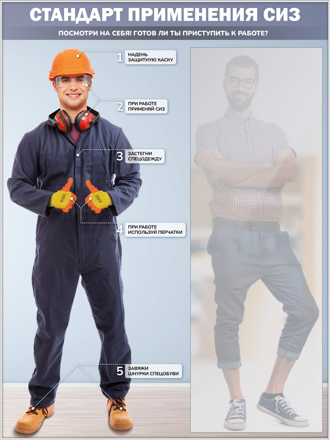 Стенд для демонстрации применения СИЗ с зеркалом, 1500х2000 мм в серебряном багете (СПС-01-С) в Верее купить