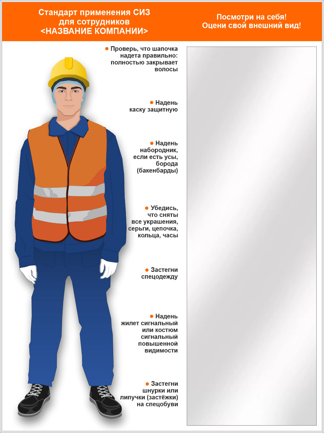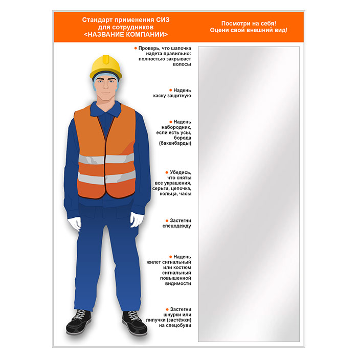 Стенд для демонстрации применения СИЗ с зеркалом, 1500х2000 мм в серебряном багете (СПС-02.2-С) в Верее купить