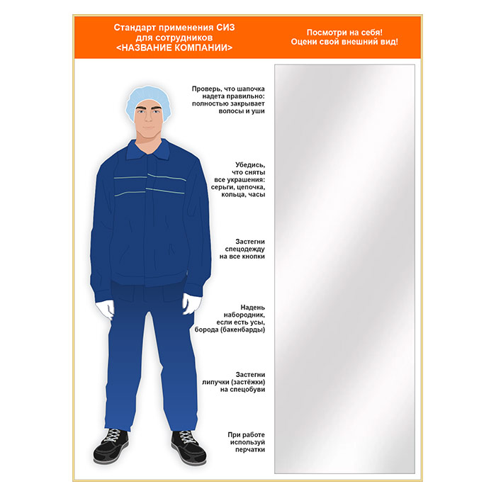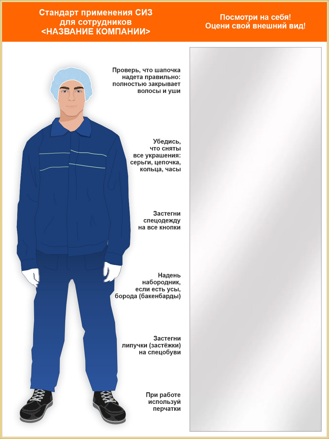 Стенд для демонстрации применения СИЗ с зеркалом, 1500х2000 мм в золотом багете (СПС-03.2-З) в Верее купить