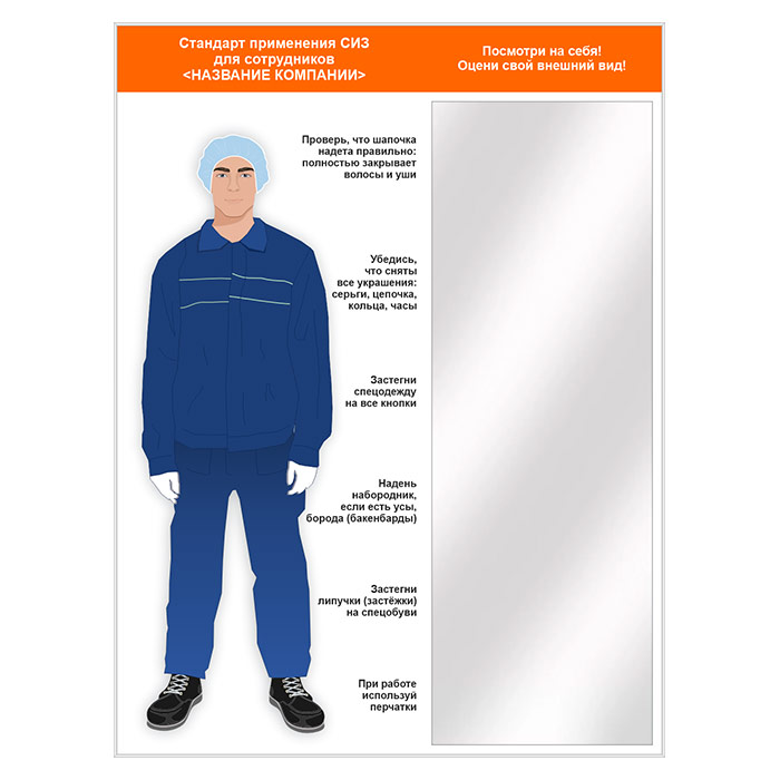 Стенд для демонстрации применения СИЗ с зеркалом, 1500х2000 мм в серебряном багете (СПС-03.2-С) в Верее купить