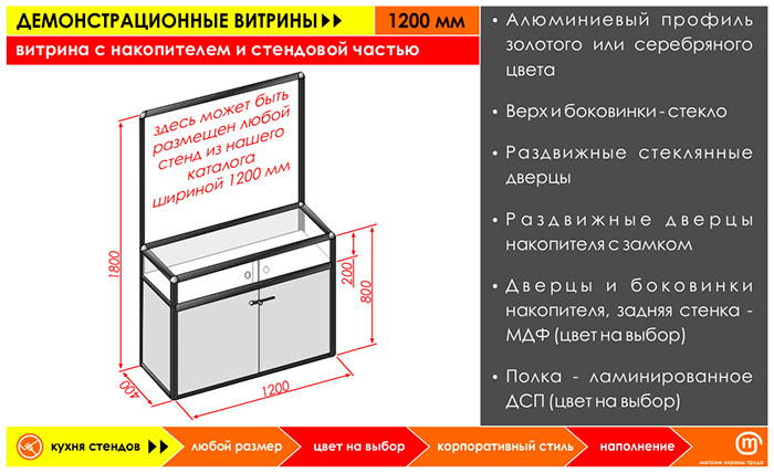 Витрина с накопителем и стендовой частью, 1200 мм в Верее купить
