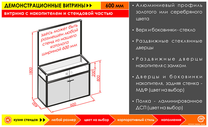 Витрина с накопителем и стендовой частью, 600 мм в Верее купить