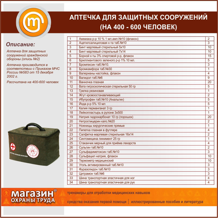 Аптечка для Защитных Сооружений (на 400 - 600 человек) - сумка в Верее купить