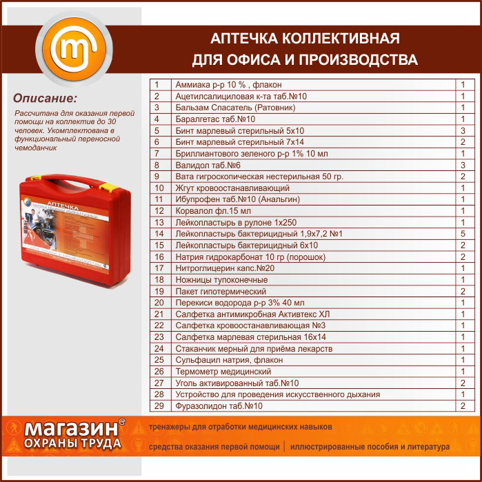Аптечка КОЛЛЕКТИВНАЯ для офиса и производства (до 30 человек) - пластиковый чемодан в Верее купить