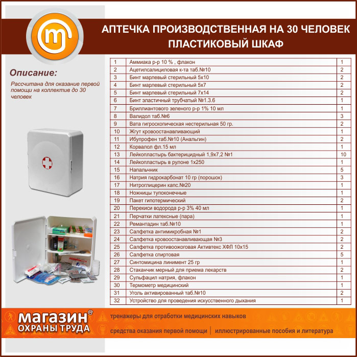 Аптечка ПРОИЗВОДСТВЕННАЯ (до 30 человек) - пластиковый шкаф в Верее купить