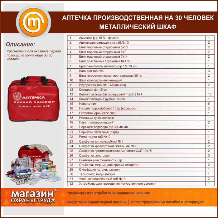Аптечка ПРОИЗВОДСТВЕННАЯ (до 30 человек) - металлический шкаф | Аптечка ПРОИЗВОДСТВЕННАЯ (до 30 человек) - металлический шкаф |