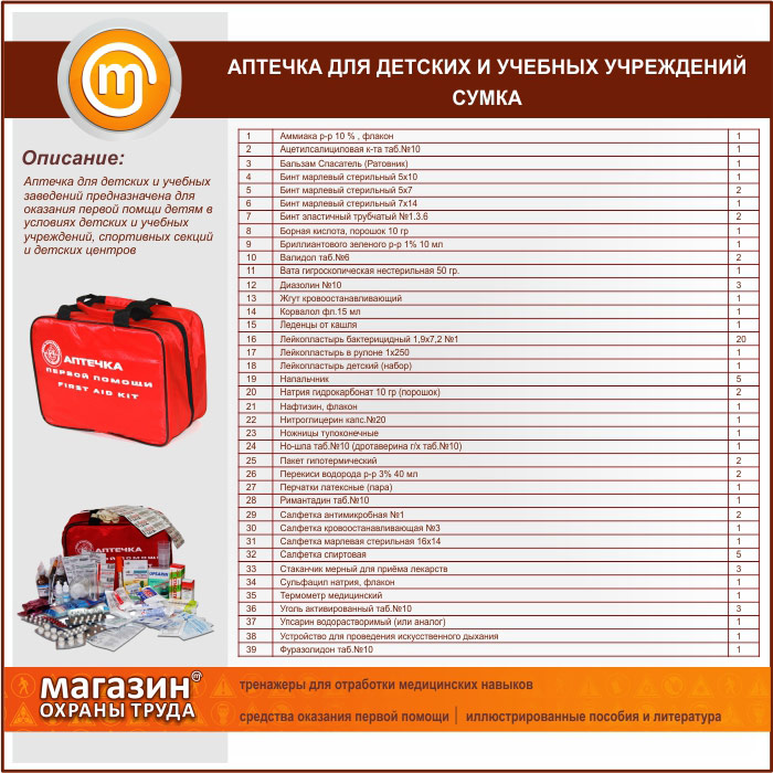 Аптечка ДЛЯ ДЕТСКИХ И УЧЕБНЫХ УЧРЕЖДЕНИЙ - сумка в Верее купить