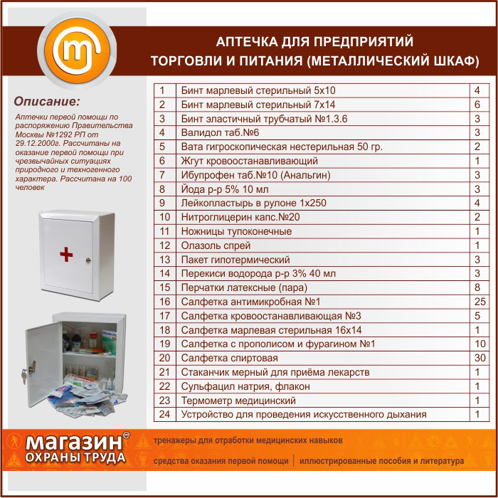 Аптечка для предприятий торговли и питания - (на 100 человек) - металлический шкаф в Верее купить