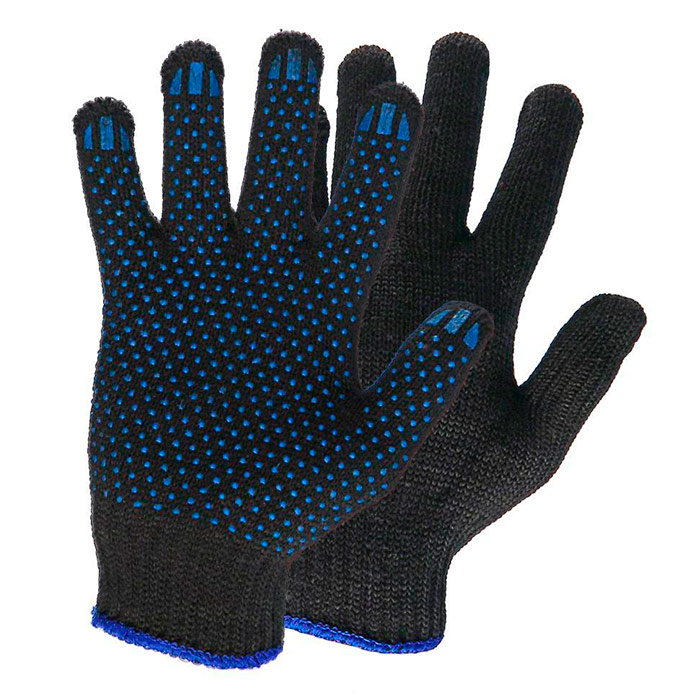 Перчатки Х/Б (5 нитей) черные с ПВХ "Точка" в Верее купить
