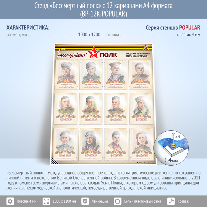 Стенд «Бессмертный полк» с 12 карманами А4 формата (BP-12K-POPULAR)