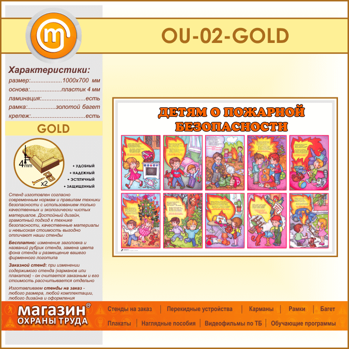 Стенд «Детям о пожарной безопасности» (OU-02-GOLD) в Верее купить