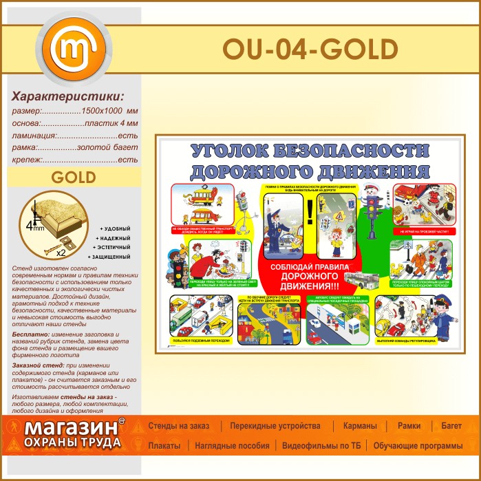 Стенд «Уголок безопасности дорожного движения» (OU-04-GOLD) в Верее купить