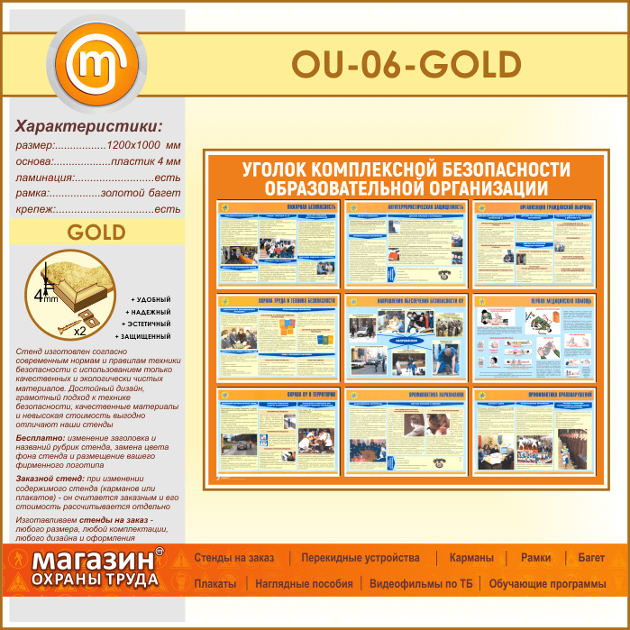 Стенд «Уголок комплексной безопасности образовательной организации» (OU-06-GOLD) в Верее купить