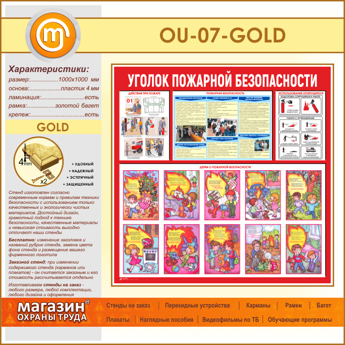 Стенд «Уголок пожарной безопасности» (OU-07-GOLD) в Верее купить