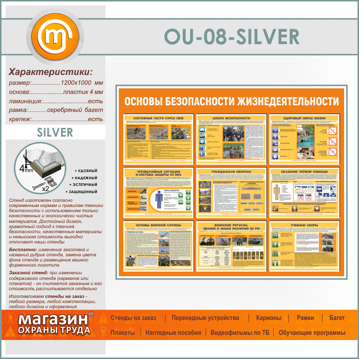 Стенд «Основы безопасности жизнедеятельности» (OU-08-SILVER) в Верее купить