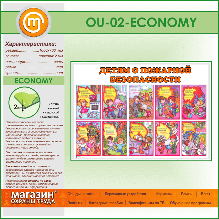 Стенд «Детям о пожарной безопасности» (OU-02-ECONOMY) в Верее купить