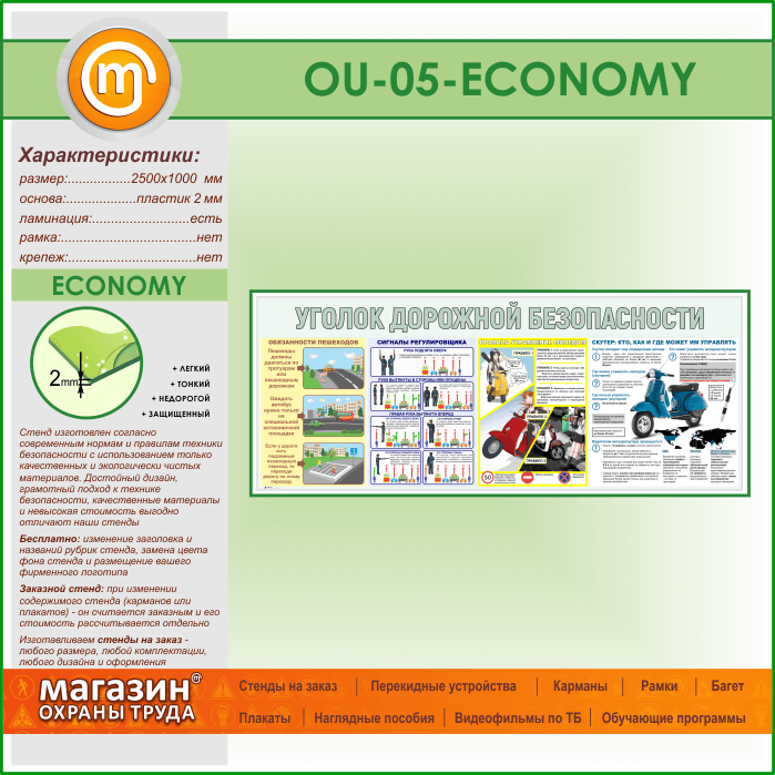 Стенд «Уголок дорожной безопасности» (OU-05-ECONOMY) в Верее купить