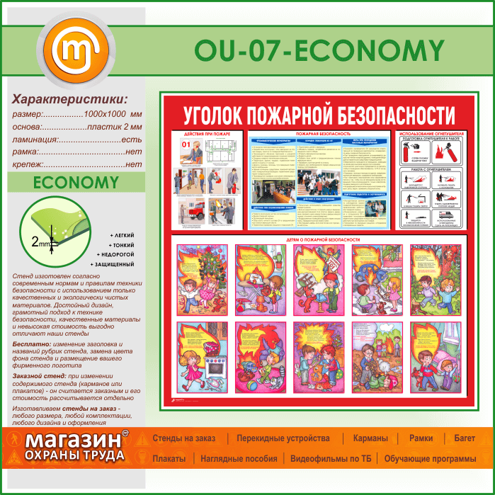 Стенд «Уголок пожарной безопасности» (OU-07-ECONOMY) в Верее купить