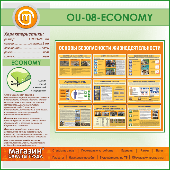 Стенд «Основы безопасности жизнедеятельности» (OU-08-ECONOMY) в Верее купить