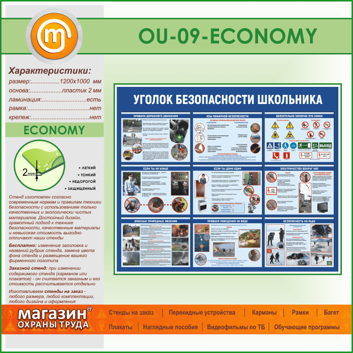 Стенд «Уголок безопасности школьника» (OU-09-ECONOMY) в Верее купить