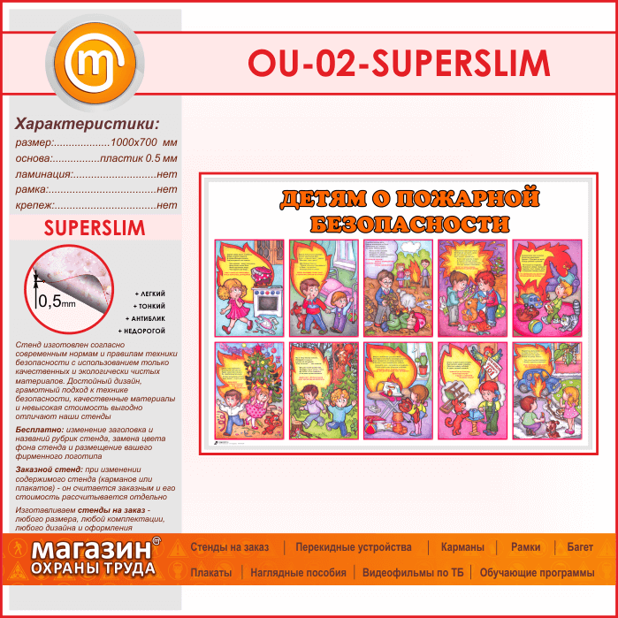 Стенд «Детям о пожарной безопасности» (OU-02-SUPERSLIM) в Верее купить