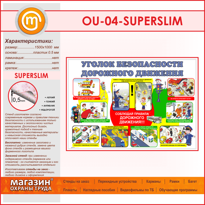 Стенд «Уголок безопасности дорожного движения» (OU-04-SUPERSLIM) в Верее купить