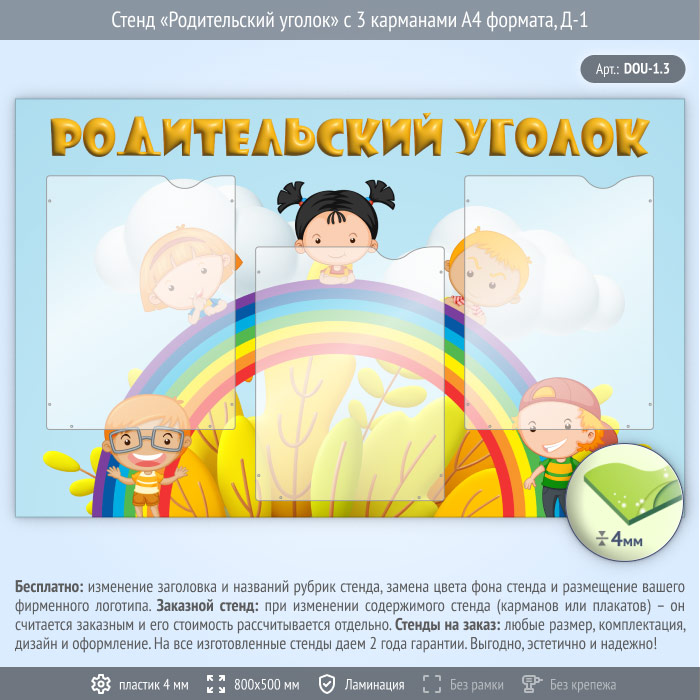 Стенд «Родительский уголок» с 3 карманами А4 формата (DOU-1.3) в Верее купить