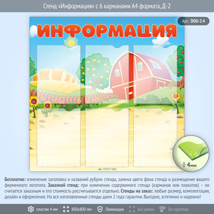 Стенд «Информация» с 6 карманами А4 формата (DOU-2.4) в Верее купить