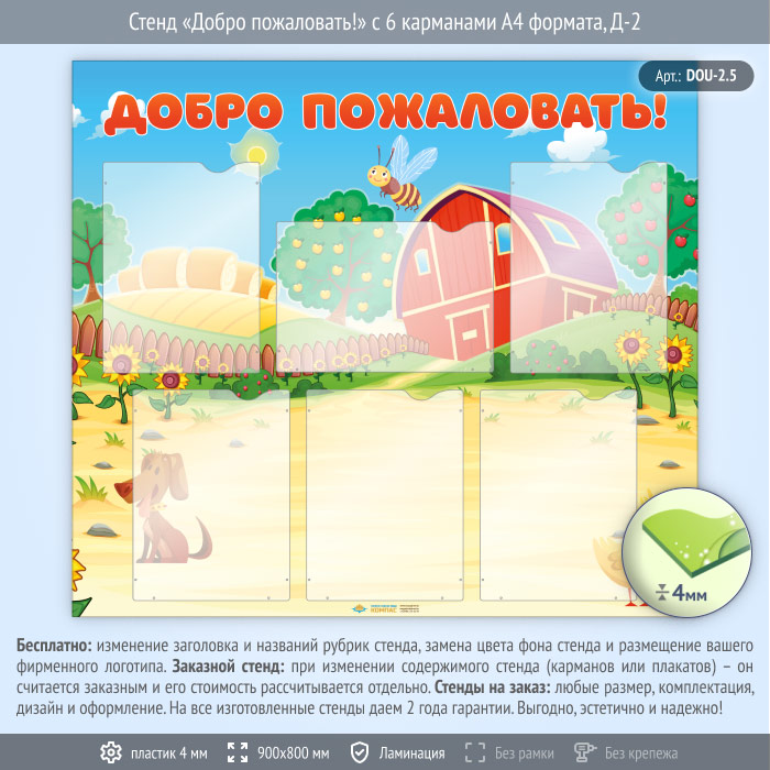 Стенд «Добро пожаловать!» с 6 карманами А4 формата (DOU-2.5) в Верее купить