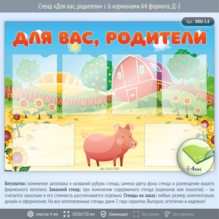 Стенд «Для вас, родители» с 6 карманами А4 формата (DOU-2.6) в Верее купить