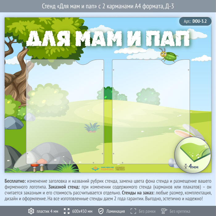 Стенд «Для мам и пап» с 2 карманами А4 формата (DOU-3.2) в Верее купить