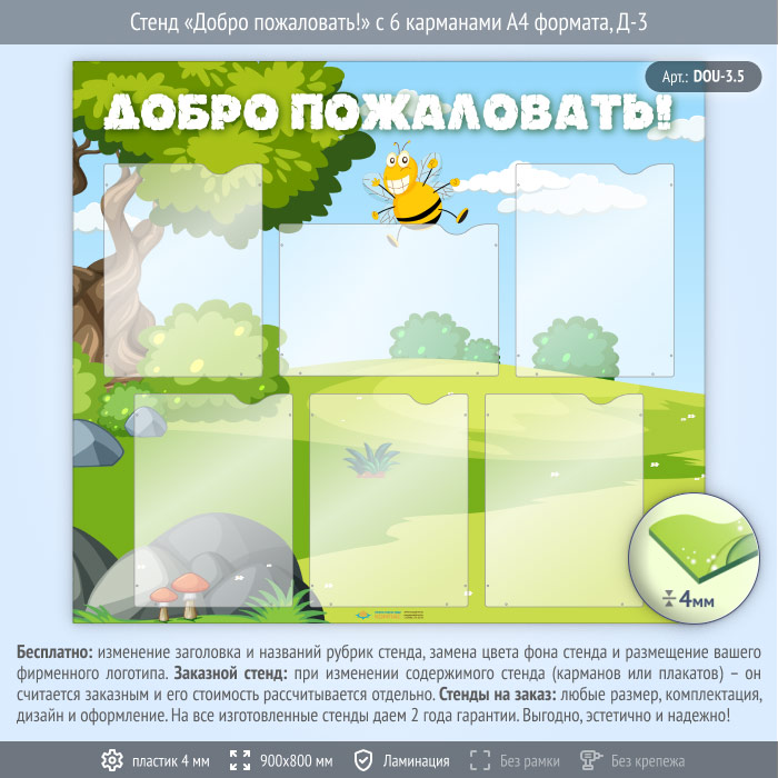Стенд «Добро пожаловать!» с 6 карманами А4 формата (DOU-3.5) в Верее купить