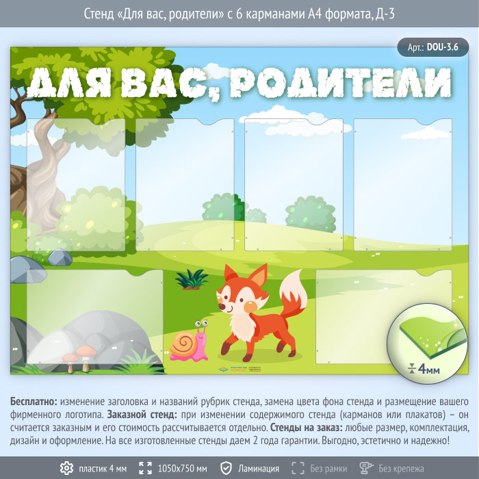 Стенд «Для вас, родители» с 6 карманами А4 формата (DOU-3.6) в Верее купить