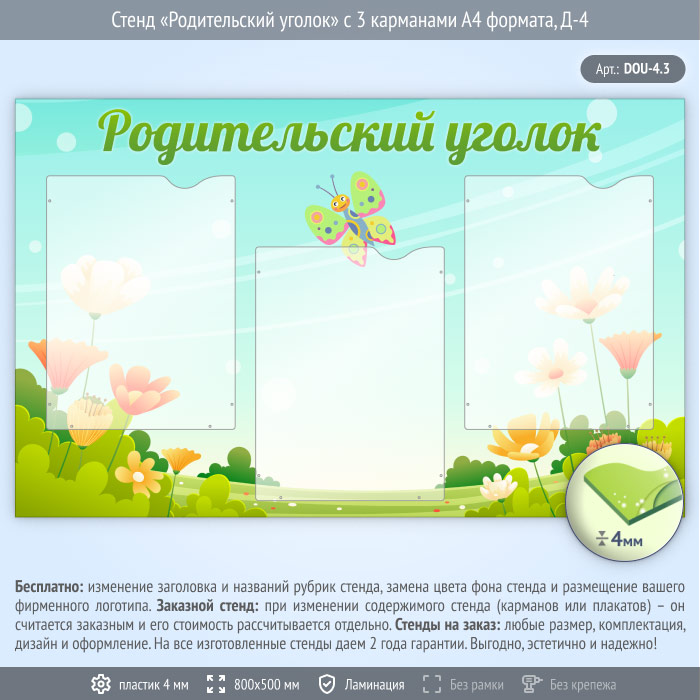Стенд «Родительский уголок» с 3 карманами А4 формата (DOU-4.3) в Верее купить