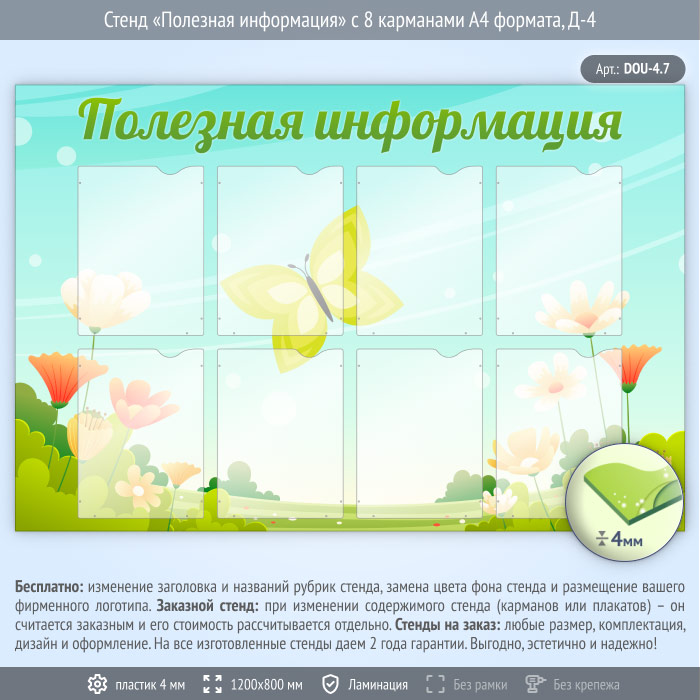 Стенд «Полезная информация» с 8 карманами А4 формата (DOU-4.7) в Верее купить