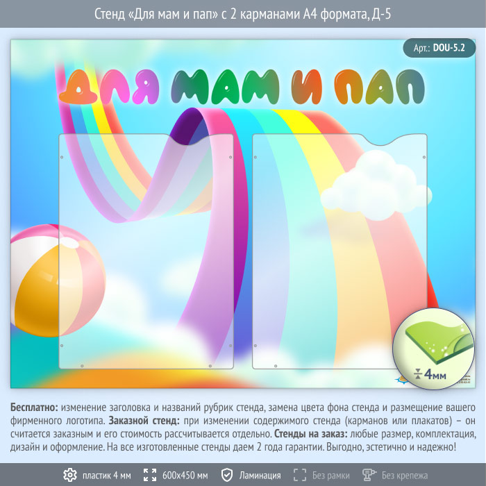Стенд «Для мам и пап» с 2 карманами А4 формата (DOU-5.2) в Верее купить