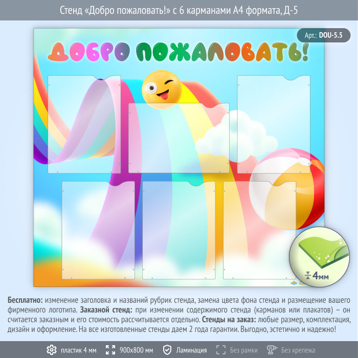 Стенд «Добро пожаловать!» с 6 карманами А4 формата (DOU-5.5) в Верее купить