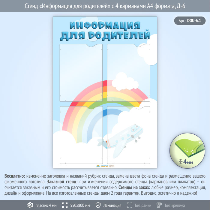 Стенд «Информация для родителей» с 4 карманами А4 формата (DOU-6.1) в Верее купить