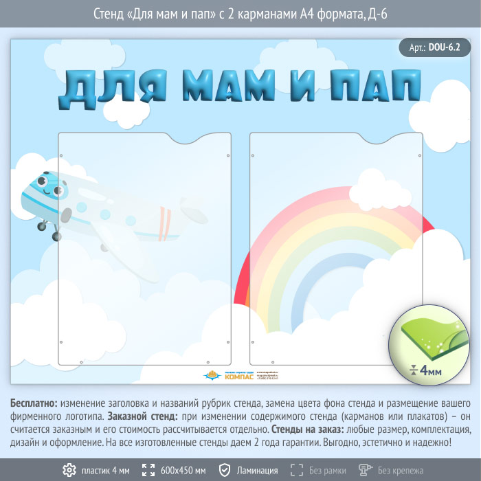 Стенд «Для мам и пап» с 2 карманами А4 формата (DOU-6.2) в Верее купить