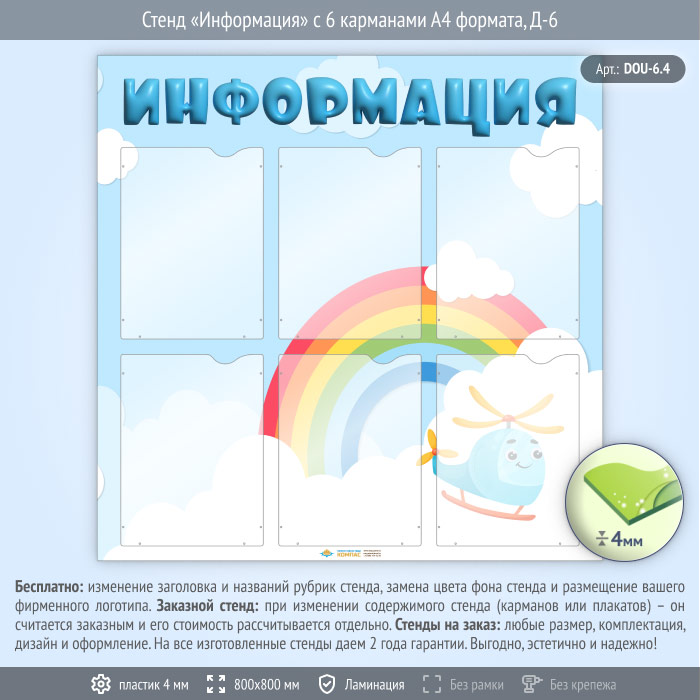 Стенд «Информация» с 6 карманами А4 формата (DOU-6.4) в Верее купить