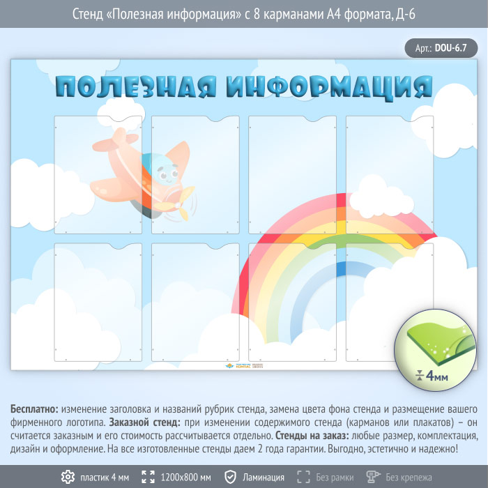 Стенд «Полезная информация» с 8 карманами А4 формата (DOU-6.7) в Верее купить