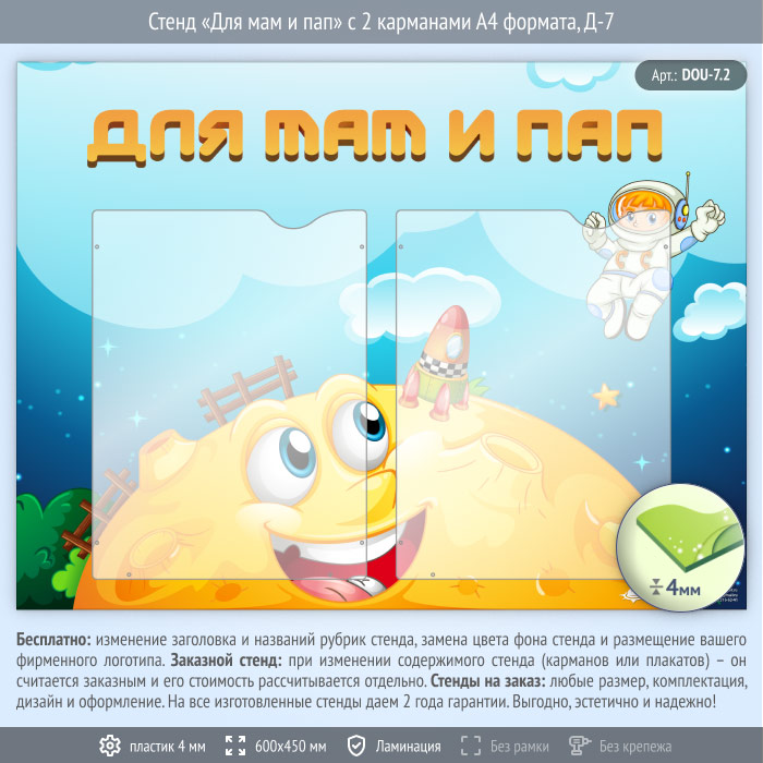 Стенд «Для мам и пап» с 2 карманами А4 формата (DOU-7.2) в Верее купить