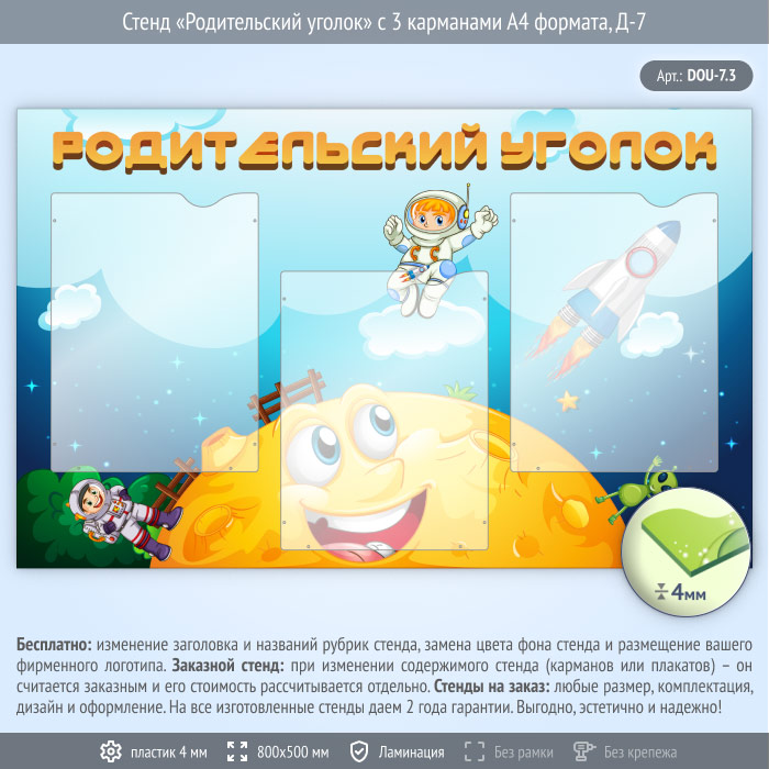Стенд «Родительский уголок» с 3 карманами А4 формата (DOU-7.3) в Верее купить