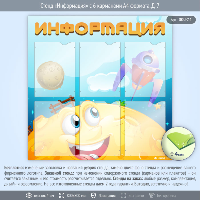 Стенд «Информация» с 6 карманами А4 формата (DOU-7.4) в Верее купить