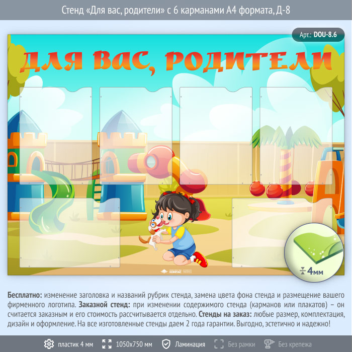 Стенд «Для вас, родители» с 6 карманами А4 формата (DOU-8.6) в Верее купить