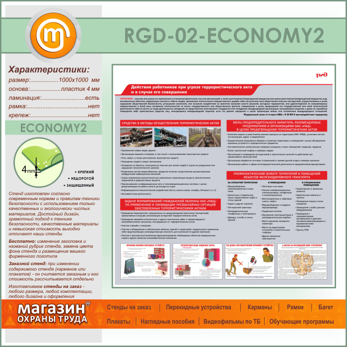 Стенд «Действия работников при угрозе совершения террористического акта и в случае его совершения» (RGD-02-ECONOMY2) в Верее купить