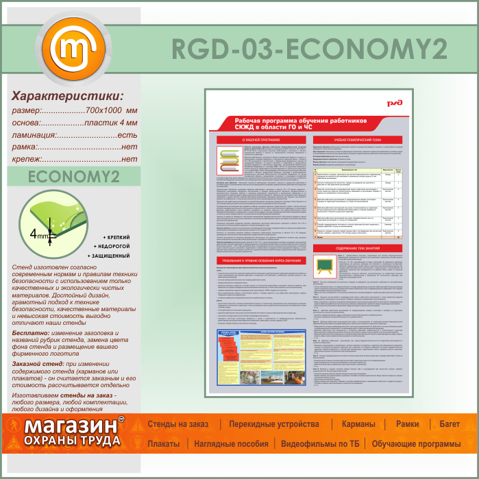 Стенд «Рабочая программа обучения работников СКЖД в области ГО и ЧС» (RGD-03-ECONOMY2) в Верее купить