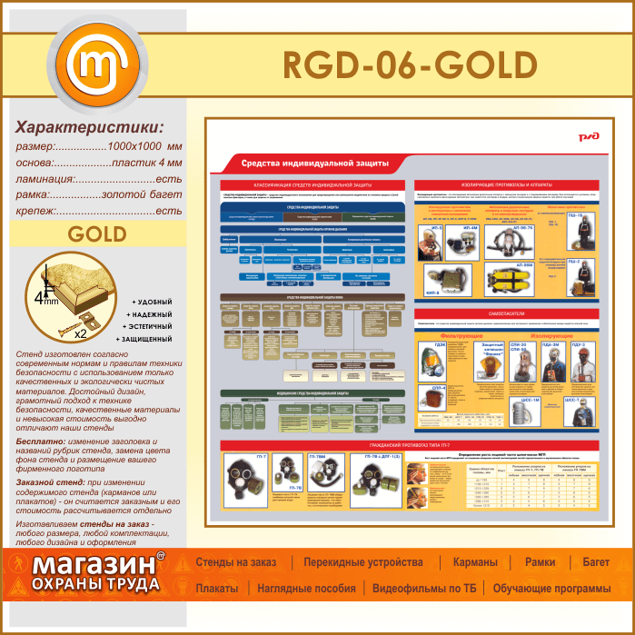 Стенд «Средства индивидуальной защиты» (RGD-06-GOLD) в Верее купить